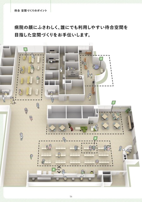 待合空間づくりのポイント病院の顔にふさわしく、誰にでも利用しやすい待合空間を目指した空間づくりをお手伝いします。DDBCA56