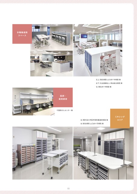 多職種連携スペース左上/綜合病院山口赤十字病院様左下/社会医療法人熊谷総合病院様右/高松赤十字病院様左/順天堂大学医学部附属浦安病院様右/綜合病院山口赤十字病院様ミキシングエリア医師・薬剤師席千葉県がんセンター様11